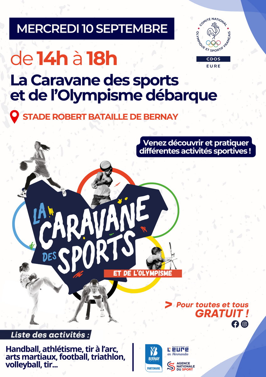 Rendez-vous sur le stade Robert Bataille de Bernay le 𝗺𝗲𝗿𝗰𝗿𝗲𝗱𝗶 𝟭𝟬 𝘀𝗲𝗽𝘁𝗲𝗺𝗯𝗿𝗲 pour une après-midi de découvertes sportives gratuite et ouverte à toutes et tous !